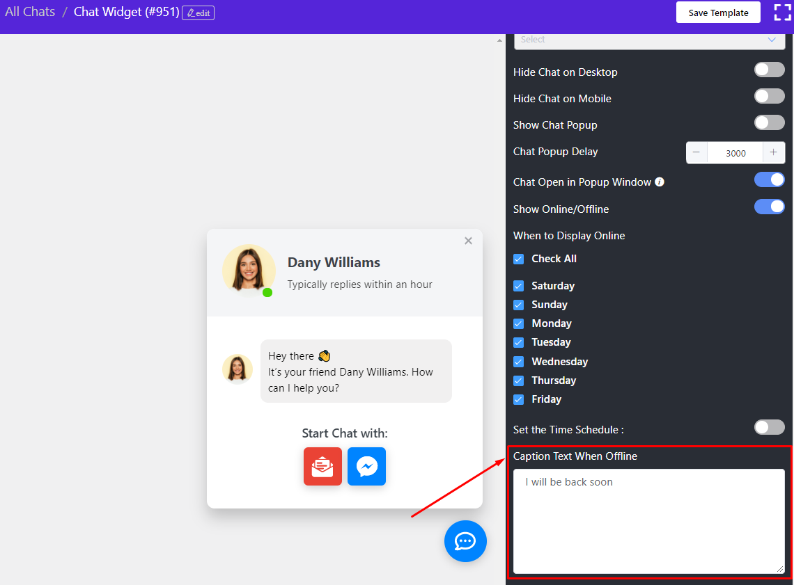 The last setting is Show online/offline. Here you can adjust two important settings; When to Display Online and Set the Time Schedule.