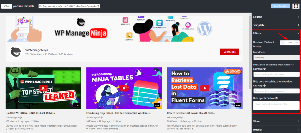 YouTube Settings WP Social Ninja allows its users to have a complete advantage of the features. YouTube Feed has a detailed Settings section.